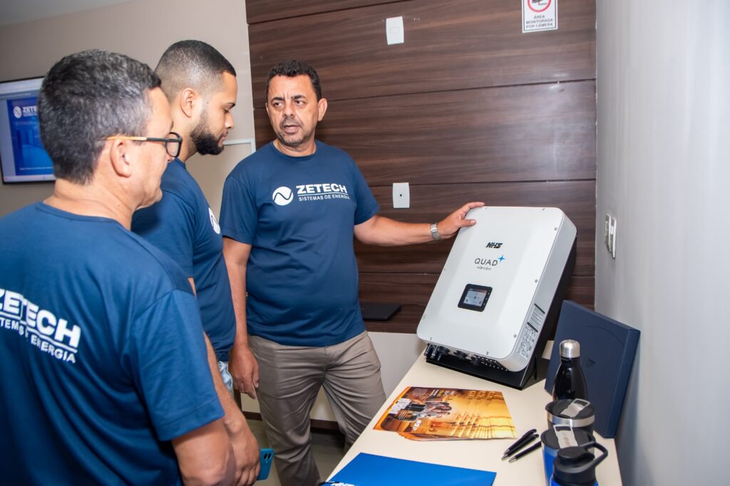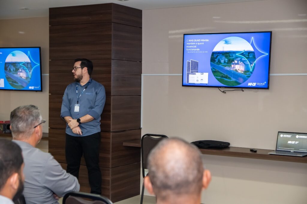 Um dos destaques foi a apresentação da solução em Energia Fotovoltaica – o inversor Quad Híbrido fabricada pela NHS que possibilita o armazenamento em banco de baterias, complementada pela avançada ferramenta de gestão remota de equipamentos. Essas tecnologias não apenas asseguram um fornecimento contínuo de energia, mas também facilitam uma gestão eficiente, abrindo novas oportunidades de mercado para nossos parceiros comerciais.