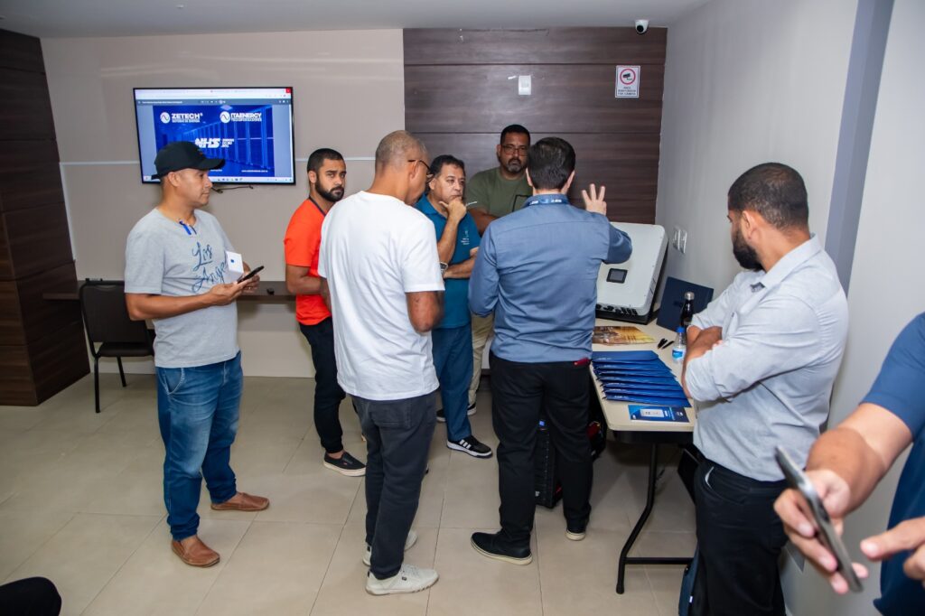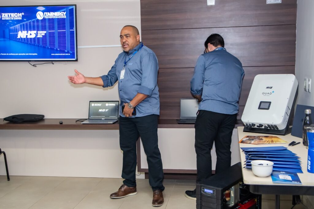André Sanchez, Coordenador de Negócios da NHS, e Idelmar Silva, Consultor de Vendas, estiveram presentes, proporcionando insights valiosos sobre as tendências do mercado e demonstrando como o Inversor Híbrido pode revolucionar o armazenamento e gestão de energia solar. Além disso, exploramos nosso amplo portfólio que inclui nobreaks UPS, transformadores de alta potência fabricados por nossa empresa parceira ItaEnergy e as inovadoras Baterias Cral que tem revolucionado o mercado.