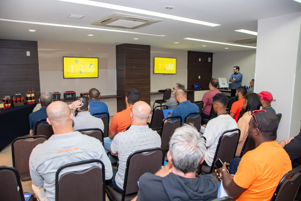 No último dia 21 de agosto, realizamos o marcante Workshop de Lançamento do Inversor Quad Híbrido e das Baterias Cral, que contou com a participação entusiasmada de mais de 40 profissionais do setor de energia solar. O evento, sediado no Promenade Apart Hotel, atraiu empresas de diversos municípios, reforçando a importância da inovação em energia fotovoltaica.